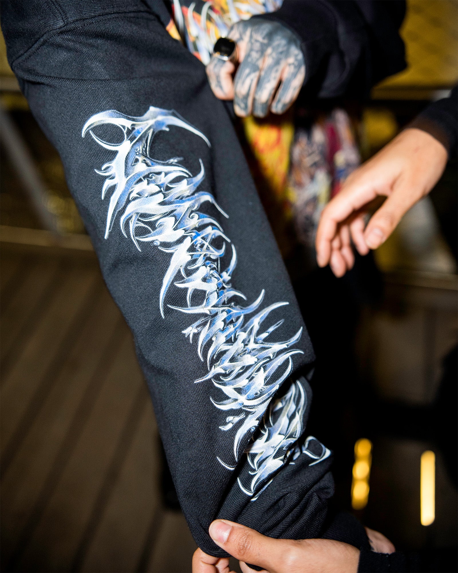 MONUMENTAL FRONT PRINT, MONUMENTAL SLEEVE PRINTS. A MONUMENT OF A SHIRT.